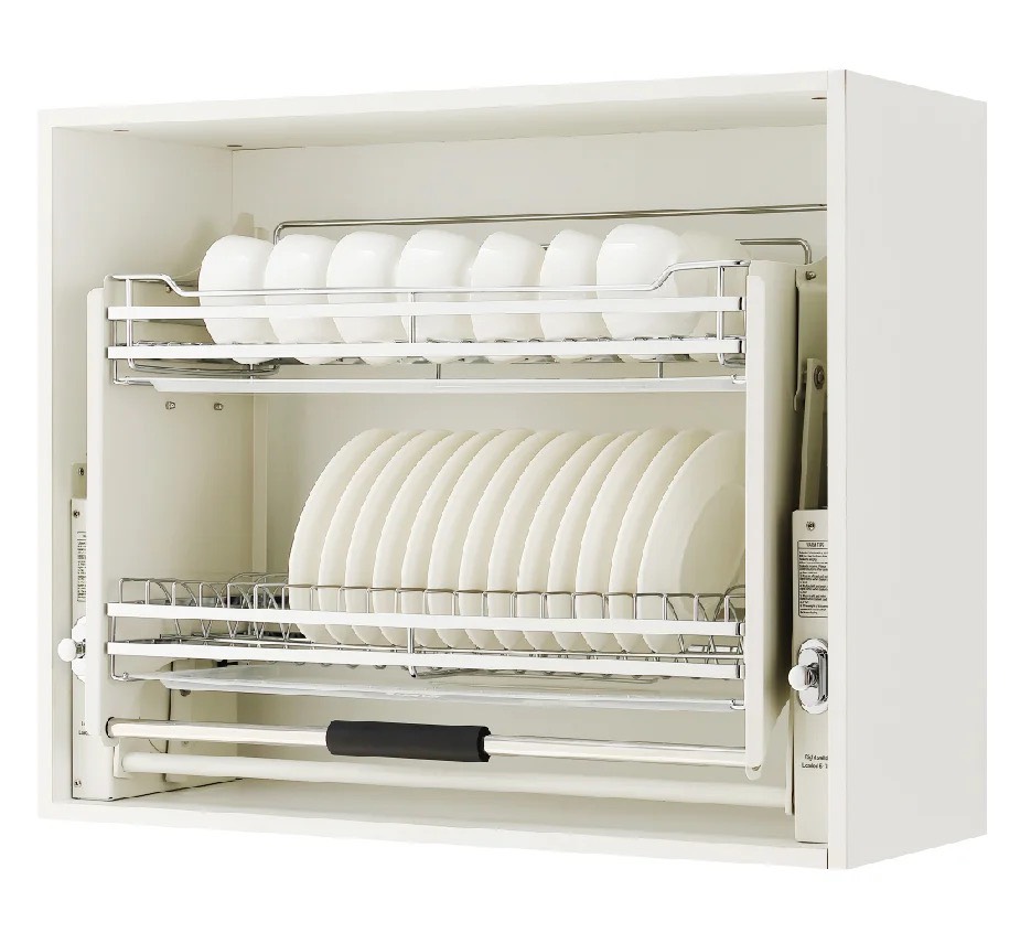 Không chỉ dừng lại ở đó, Kệ chén nâng hạ inox 304 còn mang lại tiện lợi trong việc lấy chén khi cần sử dụng. Bạn không cần phải xếp xóa các tầng chén để lấy ra chiếc chén ở phía dưới cùng nữa. Chỉ cần kéo ra kệ và lấy chiếc chén mà bạn muốn, mọi thứ trở nên dễ dàng và thuận tiện hơn bao giờ hết.