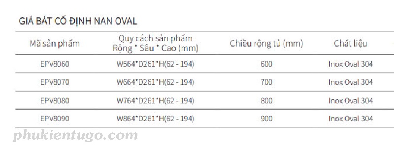 Tủ 800mm: W764*D261*H(62 - 194)