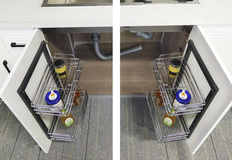 Kệ inox dưới bồn rửa chén giúp tổ chức không gian bếp gọn gàng, tiện lợi với chất liệu inox 304 bền bỉ, dễ vệ sinh và thiết kế thông minh nhiều tầng tuỳ chỉnh tăng hạ rổ inox.