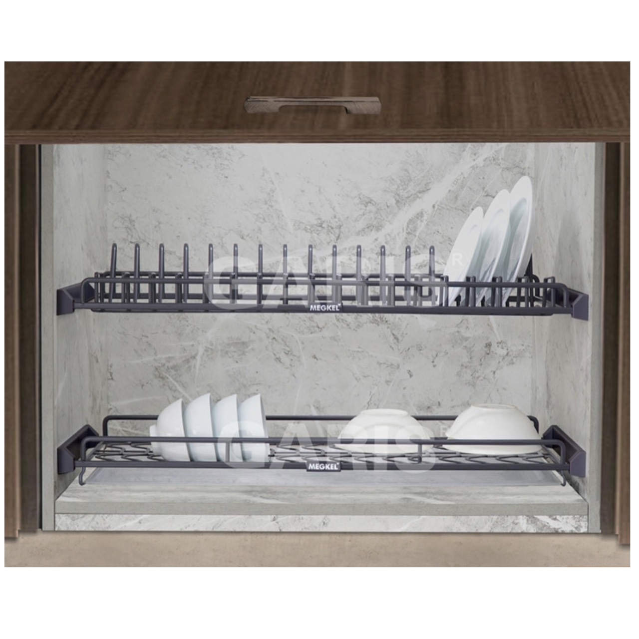 Kệ chén inox 2 tầng MB04N, Nan quả trám, thép, bề mặt phủ nano 5 lớp, màu Titan, 2 tầng, 1 khay hứng nước