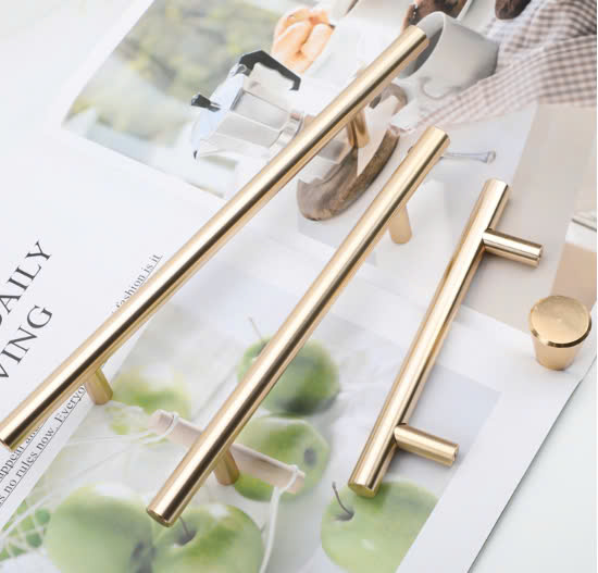 Tay nắm cửa gỗ tủ áo dạng đủa màu gold