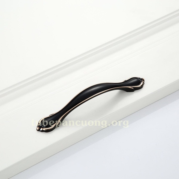 Tay nắm tân cổ điển màu đen viền vàng, tim lỗ 96mm, phù hợp cho nội thất tủ gỗ cao cấp như phòng ngủ, phòng khách ,...